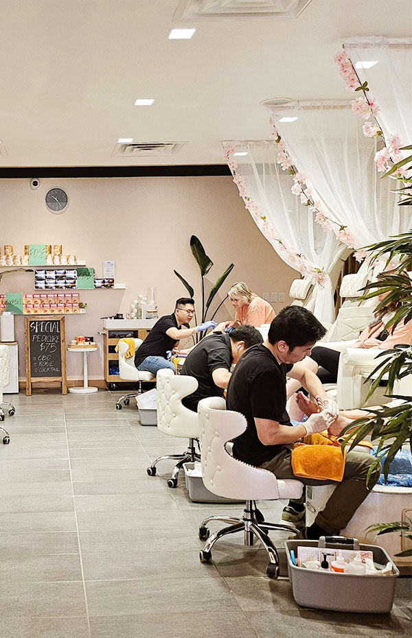 Facilities. We take pride in providing a space to escape from the busy world. Therefore, our goal for the decoration is to help you feel calm and relaxed. Cushy couches and pretty pillows invite you to sink in when the therapists perfect your nails.